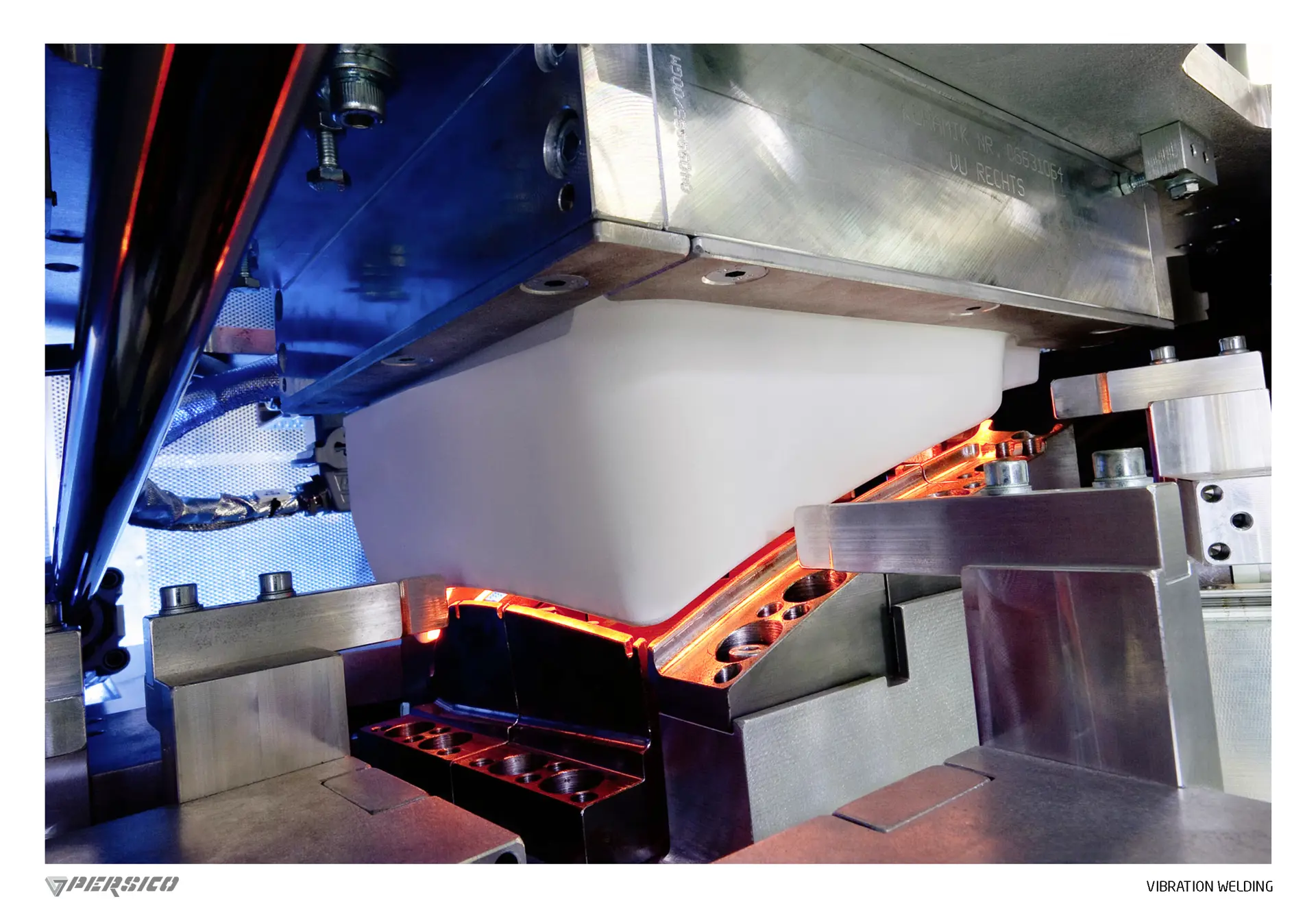 Through oscillating linear relative motion, the contact surfaces of the thermoplastic parts are heated, plasticized and welded.